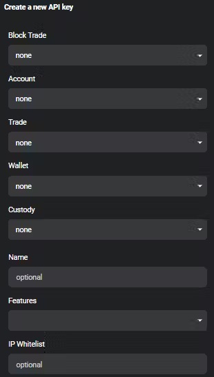 block_trade:readscope to only block trades made with this specific API key. Useful for restricting visibility when sharing API keys with third parties. - Block Trade Approval: Requires additional approval from a different API key before executing block trades. Provides enhanced oversight for partner-managed accounts.